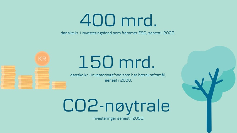 I mars i år trådte en ny EU-lovgivning om bærekraft i kraft. De nye reglene skal skape mer transparens rundt hvordan investeringsprodukter påvirker arbeidet med å skape et mer bærekraftig samfunn. Med utgangspunkt i reguleringen har Danske Bank satt en rekke nye mål, som forplikter oss til å utvikle vårt tilbud innen ansvarlige investeringsprodukter.