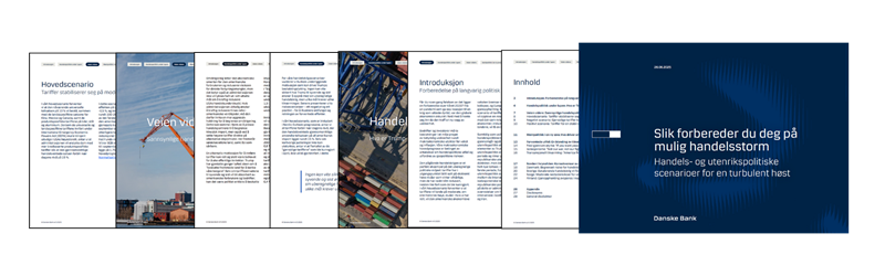 - Negativt scenario: Full handelskrig: Dersom forhandlinger bryter sammen, kan tollsatser gjeninnføres på de høye nivåene som ble truet med i april. Den gjennomsnittlige tollsatsen kan da øke til rundt 34 %. Dette vil sende USA inn i en resesjon på linje med dot-com-krisen i 2001 og gi betydelige negative utslag for økonomiene i Europa og Norden.