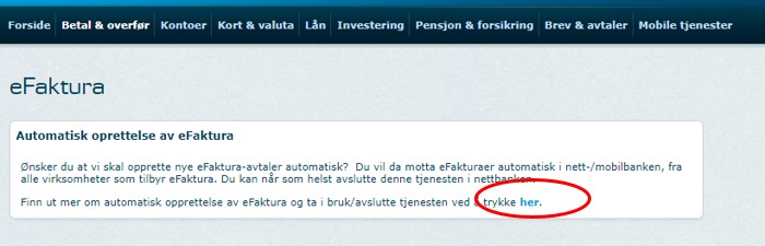 2. Klikk på linken under «Automatisk opprettelse av eFaktura»